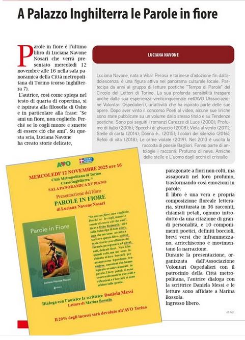 Articolo di Anna Randone su CRONACHE, il settimanale della Città Metropolitana di Torino sulla presentazione che avverrà il 12 novembre 2025 presso la Sede della Città Metropolitana di Torino, al 15° piano di corso Inghilterra 7, location che offre una vista spettacolare!